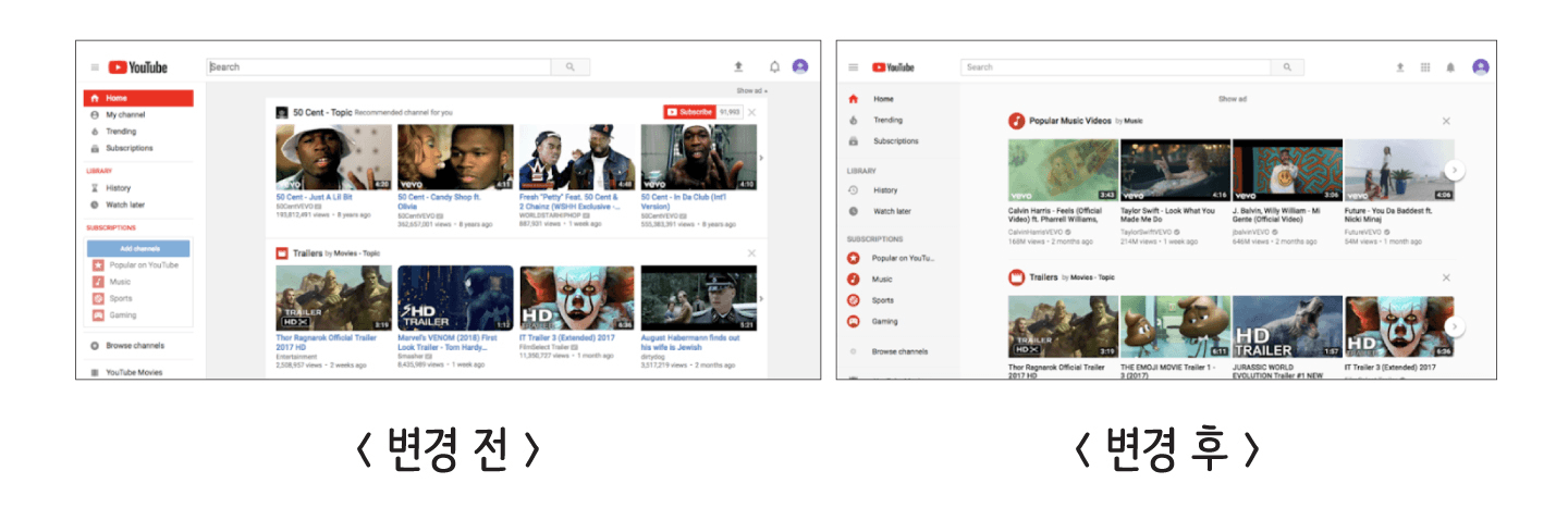 이를 개선하기 위해서는 사용자가 익숙해질 수 있는 시간을 반드시 마련해야하고, 유튜브는 '이전 디자인으로 돌아가기'라는 버튼을 만들었습니다.