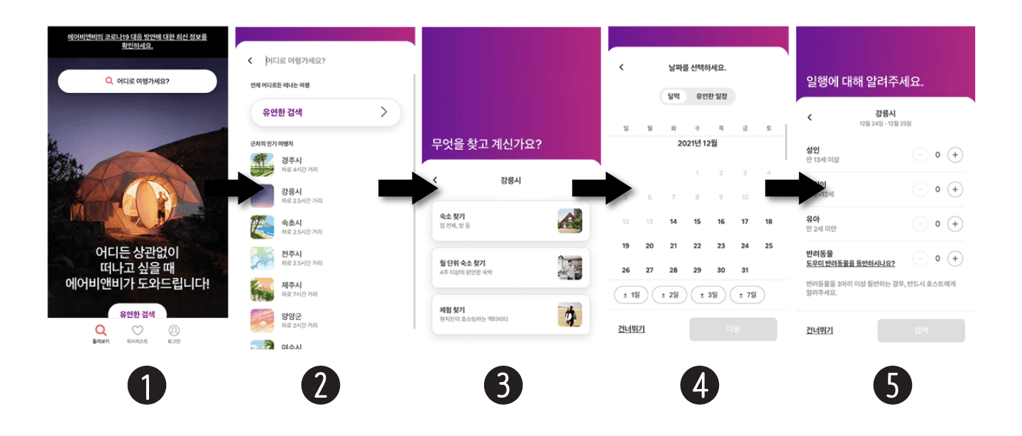 에어비앤비의 UX 디자인이 대표적인 사례로, 모바일 환경에서는 사용자가 한 번에 하나의 선택만 할 수 있도록 설계되었습니다.